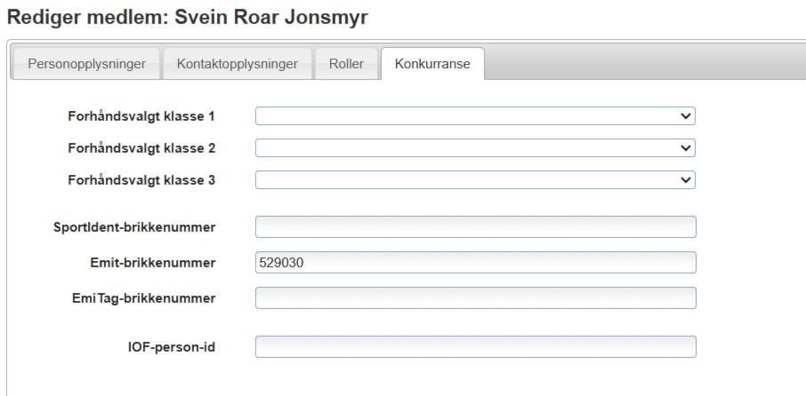 For de som har både Brikke og Tag kan legge inn Tag-nummer i Eventor, se under: